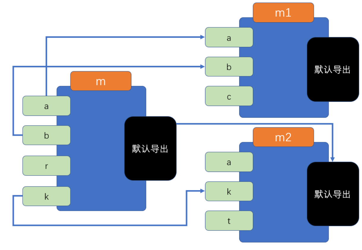 有的时候,我们可能需要用一个模块封装多个模块,然后有选择的将多个模块的内容分别导出,可以使用下面的语法轻松完成