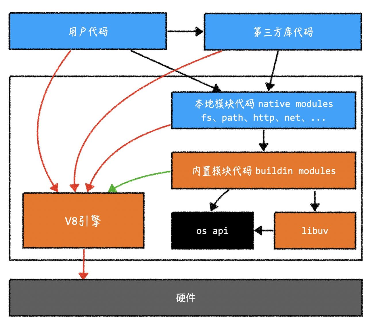 - libuv:libuv 是一个跨平台的异步 I/O 库,它为 Node.js 提供了非阻塞的事件驱动的 I/O 操作。它可以处理文件系统操作、网络请求、定时器等等,在 Node.js 中用于处理事件循环。