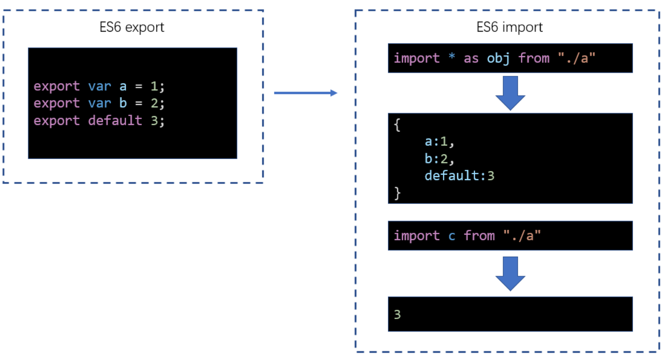 console.log(obj.a, obj.b, obj.default)es6a.js