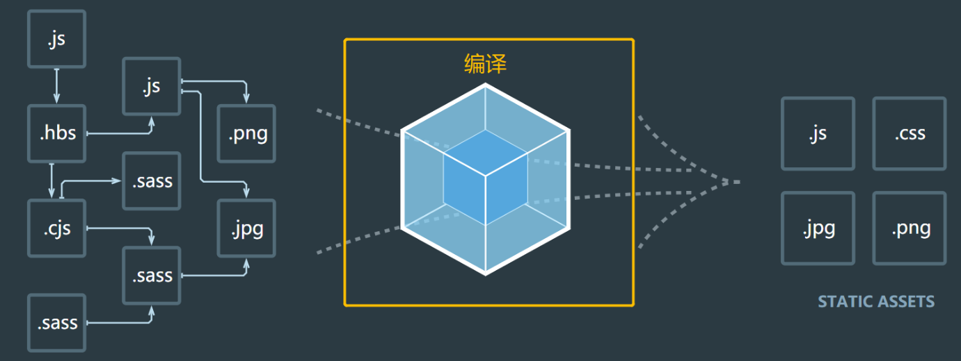 它通过一个开发时态的入口模块为起点,分析出所有的依赖关系,然后经过一系列的过程(压缩、合并),最终生成运行时态的文件。