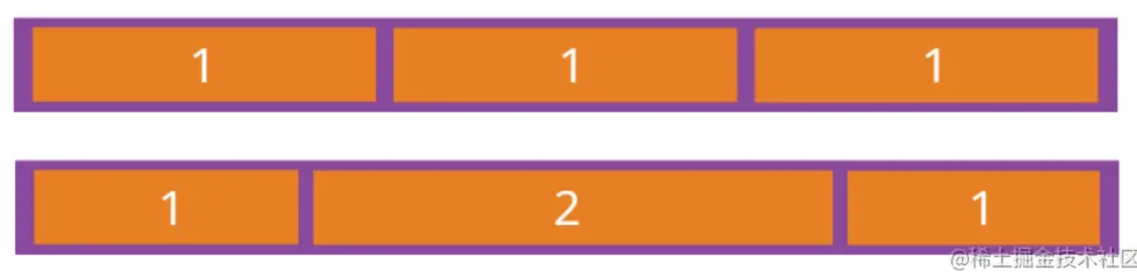 flex-grow 属性定义项目的放大比例,默认为 0 ,即如果存在剩余空间,也不放大。 如果所有项目的 flex-grow 属性都为 1,则它们将等分剩余空间(如果有的话)。 如果一个项目的 flex-grow 属性为 2,其他项目都为 1,则前者占据的剩余空间将比其他项多一倍。