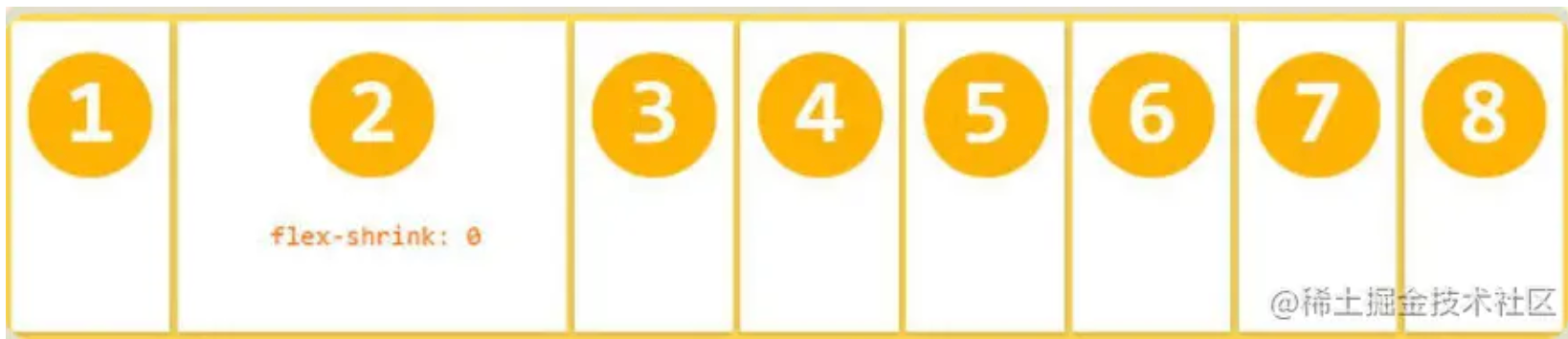 flex-shrink 属性定义了项目的缩小比例,默认为 1,即如果空间不足,该项目将缩小。 如果所有项目的 flex-shrink 属性都为 1,当空间不足时,都将等比例缩小。 如果一个项目的 flex-shrink 属性为 0,其他项目都为 1,则空间不足时,前者不缩小。