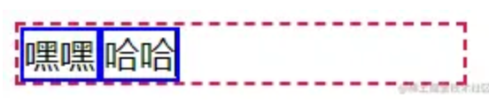 举例,外容器是红色,内里元素蓝色边框,比较少,会有下图效果,剩余空间仍有保留。剩余空间有,但是因为 flex-grow 属性是 0,所以没有填补空白。