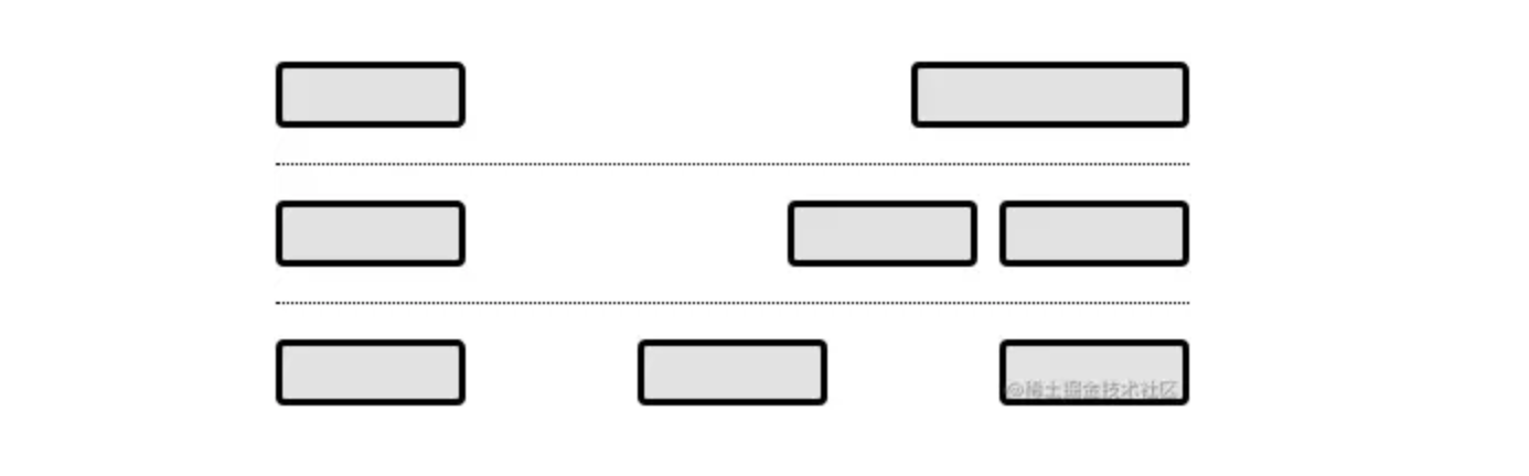 initial 表示 CSS 属性的初始值,通常用来还原已经设置的 CSS 属性。因此日常开发不会专门设置 flex:initial 声明。flex:initial 声明适用于下图所示的布局效果。