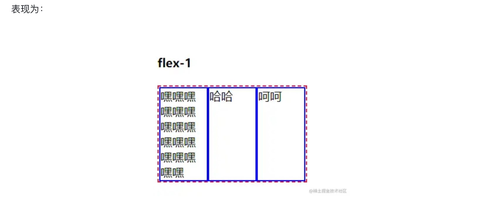 </style>如果子项内容很多,由于 flex-shrink:1 ,因此,会缩小,表现效果就是文字换行,效果如下图所示。
