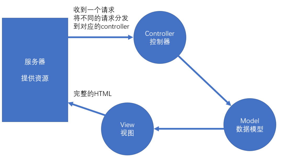 Controller: 处理请求,组装这次请求需要的数据 Model:需要用于 UI 渲染的数据模型 View:视图,用于将模型组装到界面中
