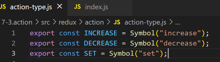 - 在大型项目,由于操作类型非常多,为了避免硬编码(hard code),会将 action 的类型存放到一个或一些单独的文件中(样板代码)。