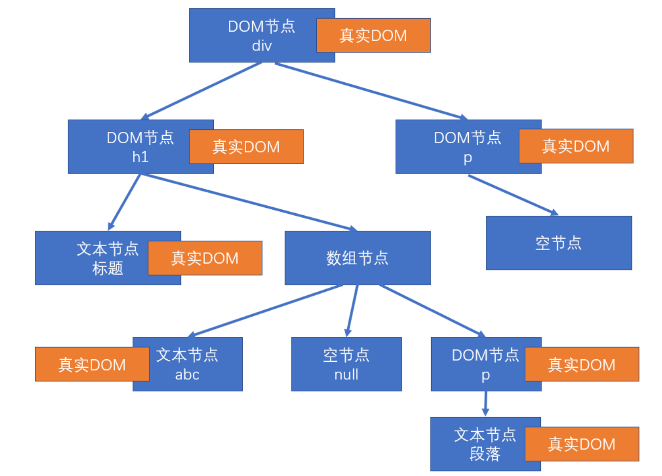 - 真实 DOM:通过 document.createElement 创建的 dom 元素