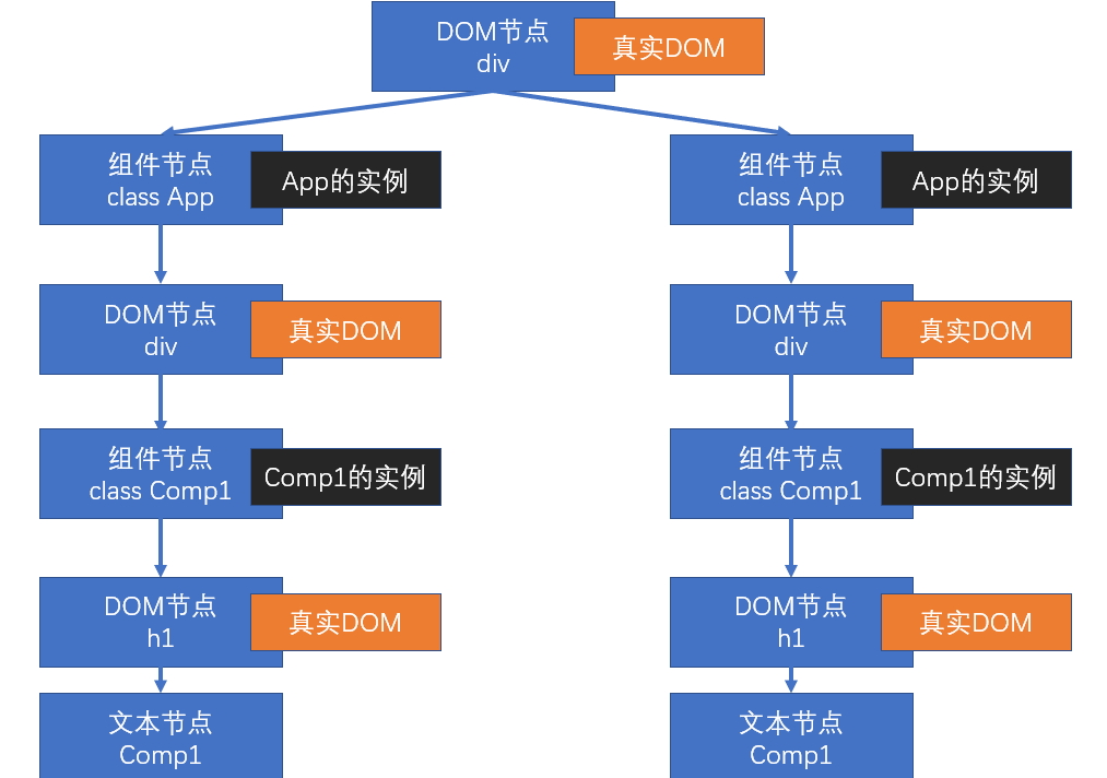 - 运行 render,得到一个新的节点,进入该新的节点的对比更新