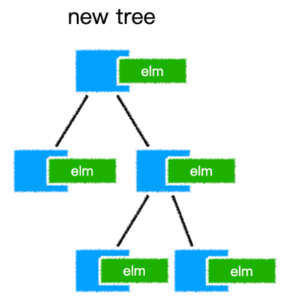 说明这是第一次加载组件,于是通过内部的patch函数,直接遍历新树,为每个节点生成真实 DOM,挂载到每个节点的elm属性上