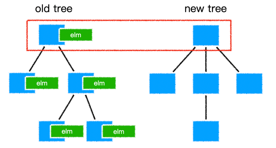 - 旧节点「销毁元素」