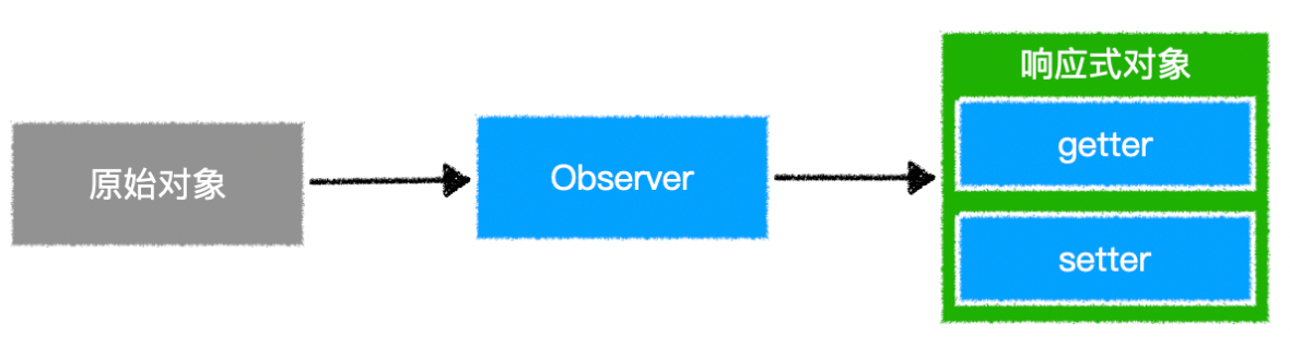 Observer 要实现的目标非常简单,就是把一个普通的对象转换为响应式的对象
