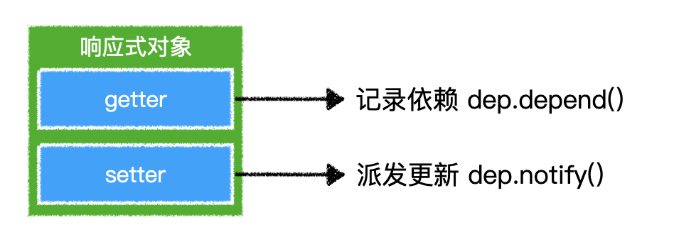 响应式数据的最终目标,是当对象本身或对象属性发生变化时,将会运行一些函数,最常见的就是 render 函数。 在具体实现上,vue2 用到了几个核心模块: