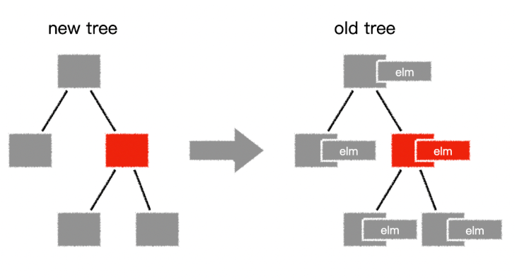 虚拟 DOM 树会最终生成为真实的 DOM 树,这个过程叫渲染 当数据变化后,将引发重新渲染,vue 会比较新旧两棵 vnode tree,找出差异,然后仅把差异部分应用到真实 dom tree 中。对比的是对象,效率很高