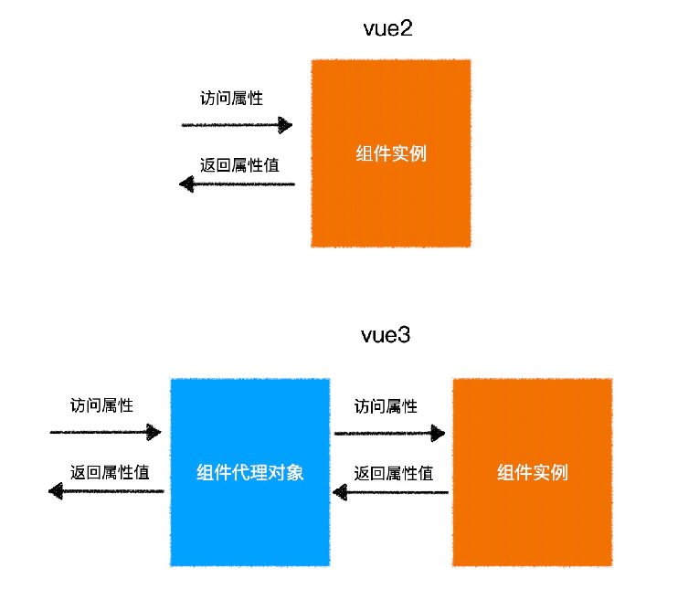 - vue2 没有把组件实例和 vue 应用两个概念区分开,在 vue2 中,通过 new Vue 创建的对象,既是一个 vue 应用,同时又是一个特殊的 vue 组件。vue3 中,把两个概念区别开来,通过 createApp 创建的对象,是一个 vue 应用,它内部提供的方法是针对整个应用的,而不再是一个特殊的组件。