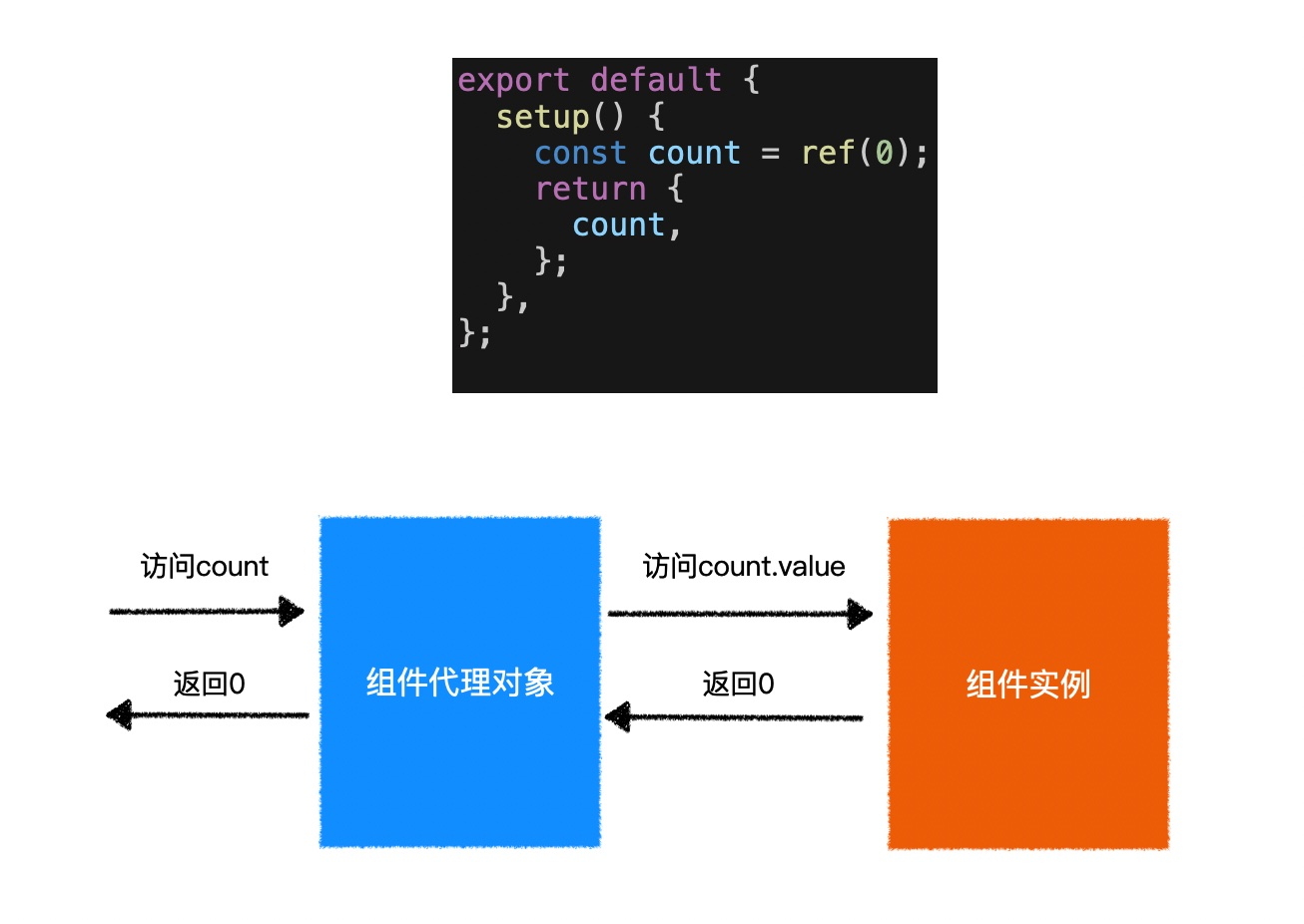 // 实例代理中,count是一个count.value